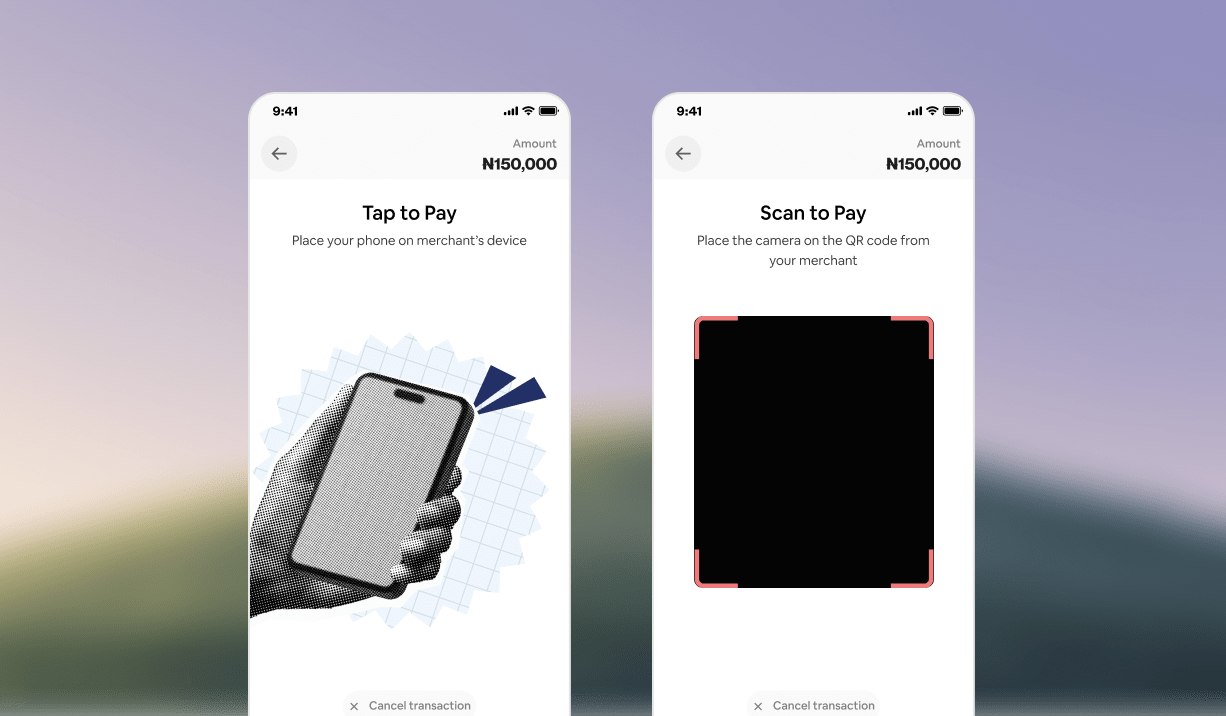 Explored interaction patterns for tap-to-pay and QR payments.